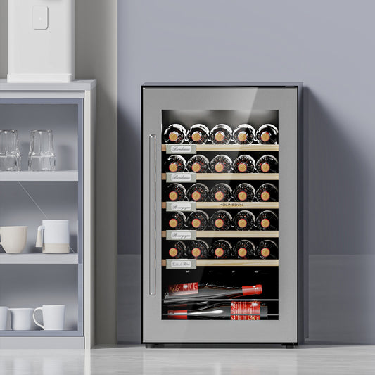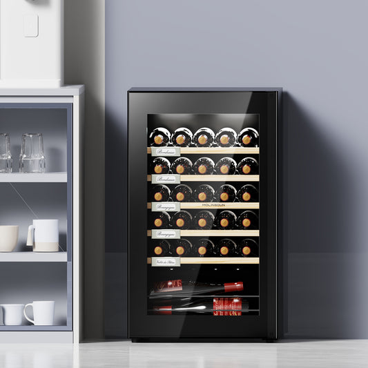 MOLINGDUN Wine Fridge, 33 Bottles Freestanding Wine Cooler, Intelligent Compressor, Frost Free, Glass Door, 41-64℉ Adjustable Digital Temperature Control, for Red, White, Champagne or Sparkling Wine
